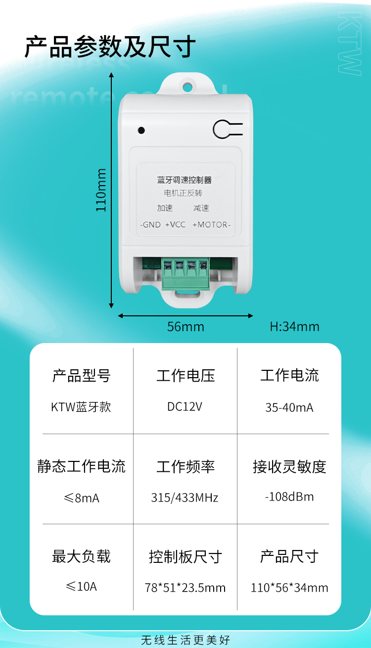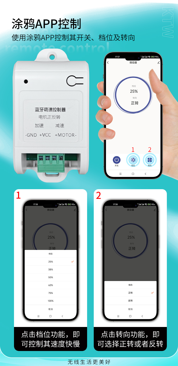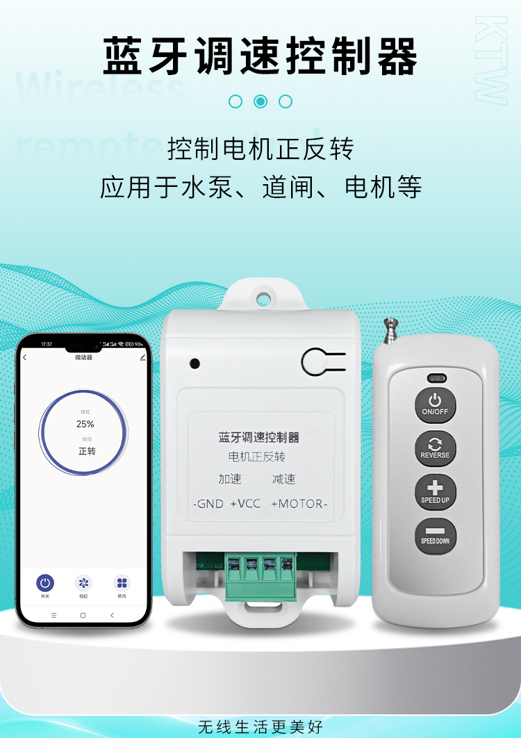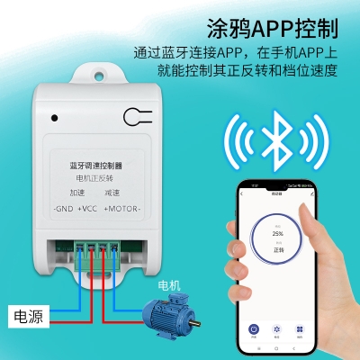 这款产品是黄瓜视频污污污蓝牙电机正反转调速控制器,可通过手机涂鸦APP进行控制,实现正转、反转、加减速等功能。