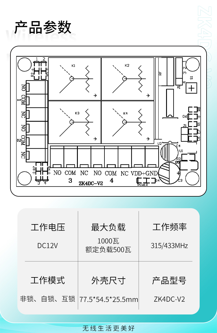 ZK4DC-V2是一款具有四路继电器输出的黄瓜视频污污污控制器,工作电压12V,带载能力强