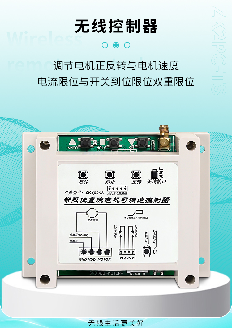 5.电机速度可以通过遥控器调节设置速度的快满,能满足各种转速要求;