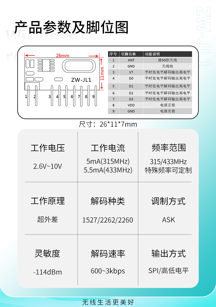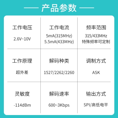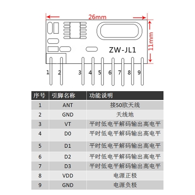 ZW-JL1是一款超外差带解码黄瓜视频污污污接收模块,它具有高灵敏度、抗干扰性强、性价比高等特点