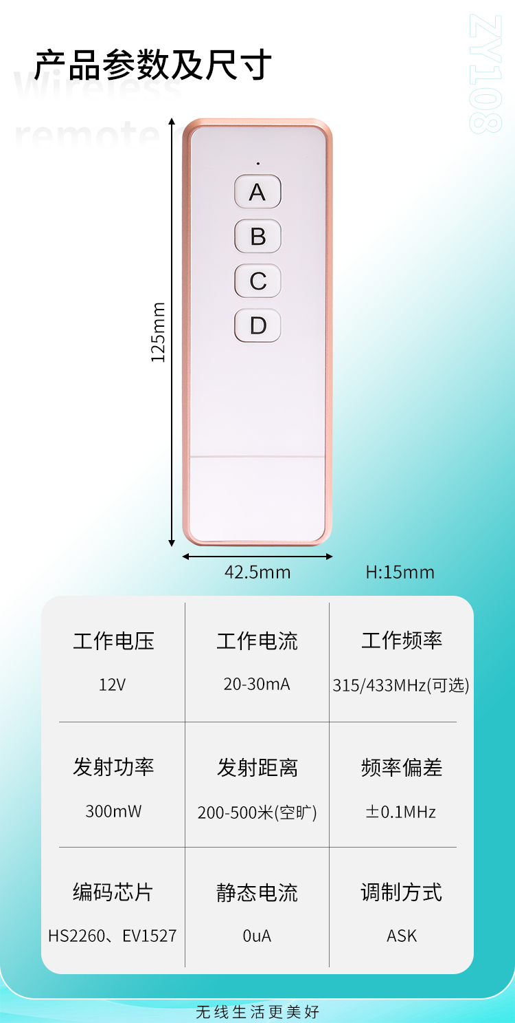ZY108是一款小功率黄瓜视频污污污遥控器,外观精美