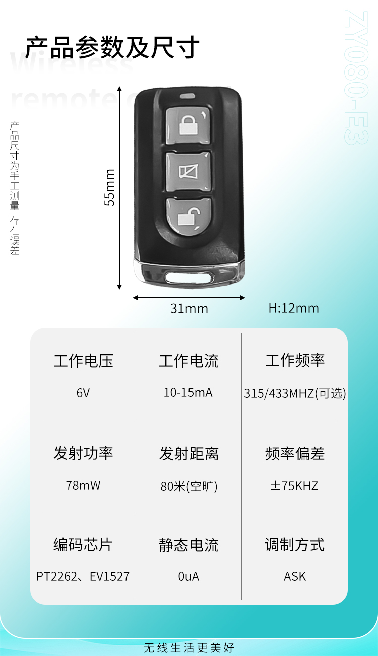 ZY080是一款3键小功率遥控器
