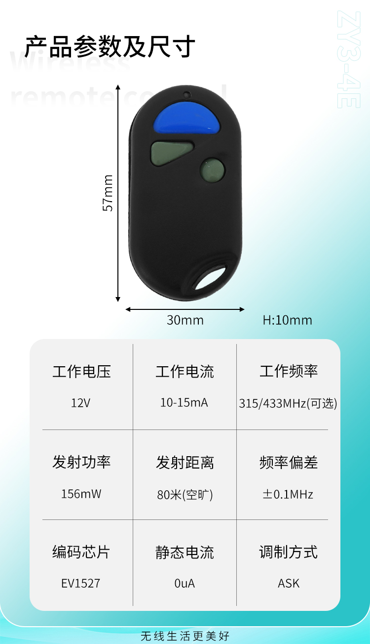 ZY3-4E是一款可防水黄瓜视频污污污遥控器,具有可靠性高、频率稳定、穿透能力强等特点;