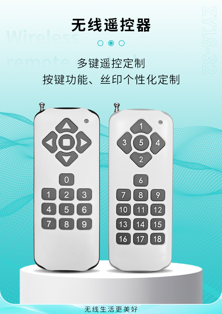 ZY18是一款中功率黄瓜视频污污污遥控器,15键、18键可选择,具有可靠性高、频率稳定、穿透能力强等特点;